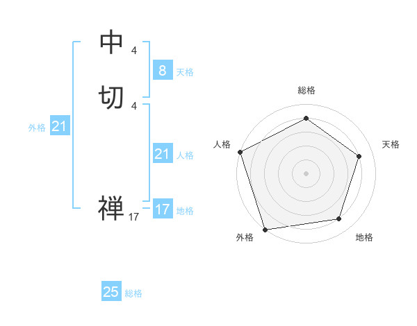 中切 禅さんの外格は21画の5点!