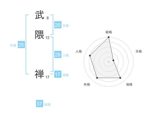 武隈 禅さんを姓名の画数から五運を鑑定