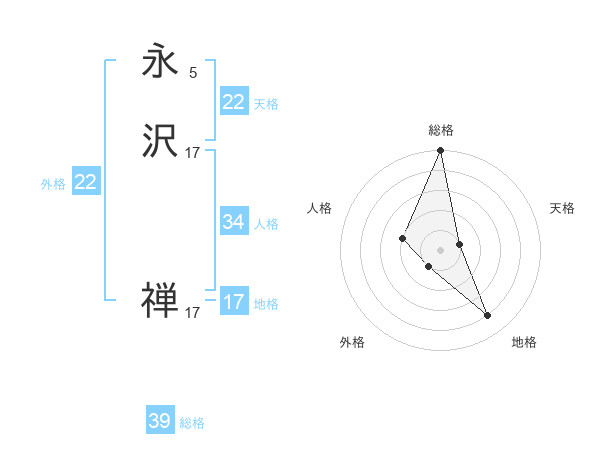 永沢 禅さんの総格は39画の5点!