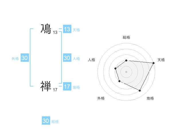 鳰 禅さんの外格は30画の2点!