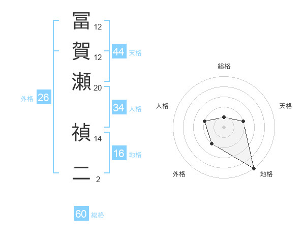 冨賀瀬 禎二さんを姓名の画数から五運を鑑定