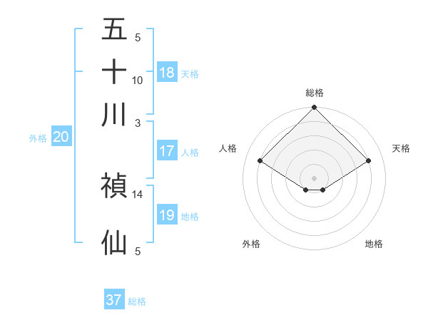 五十川 禎仙さんを姓名の画数から五運を鑑定