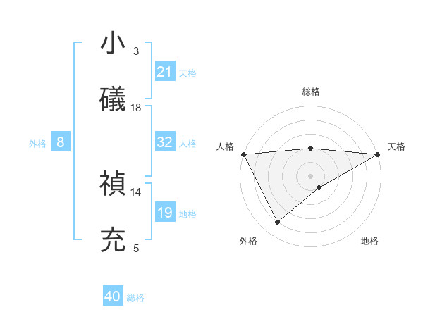 小礒 禎充さんを姓名の画数から五運を鑑定