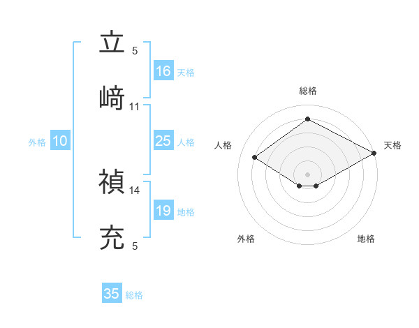立﨑 禎充さんの天格は16画の5点!