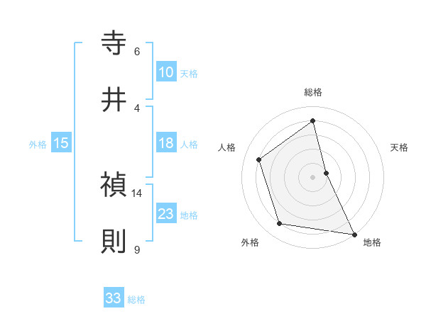寺井 禎則さんを姓名の画数から五運を鑑定