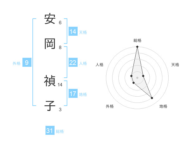 安岡 禎子さんの総格は31画の5点!