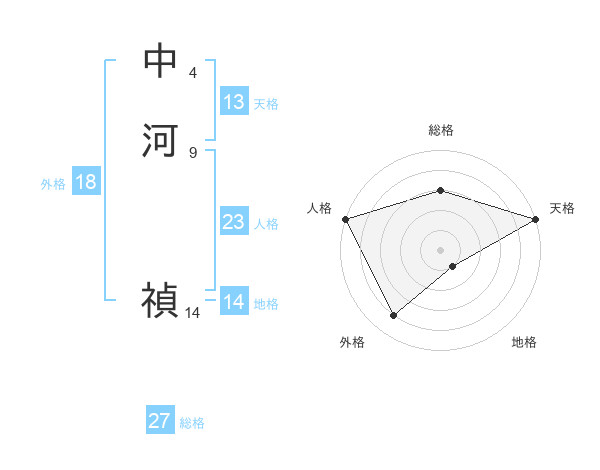 中河 禎さんの総格は27画の3点!