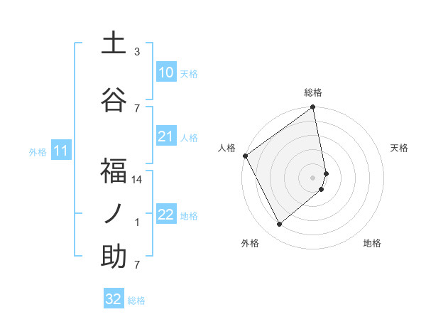 土谷 福ノ助さんを姓名の画数から五運を鑑定