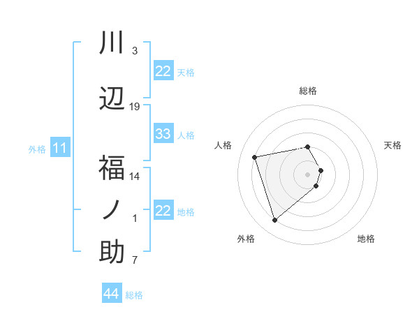 川辺 福ノ助さんの地格は22画の1点!