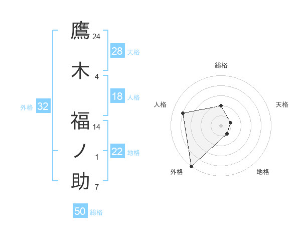 鷹木 福ノ助さんの外格は32画の5点!
