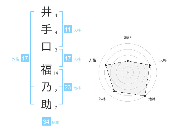 井手口 福乃助さんを姓名の画数から五運を鑑定