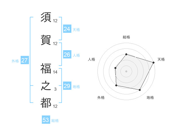須賀 福之都さんの総格は53画の3点!
