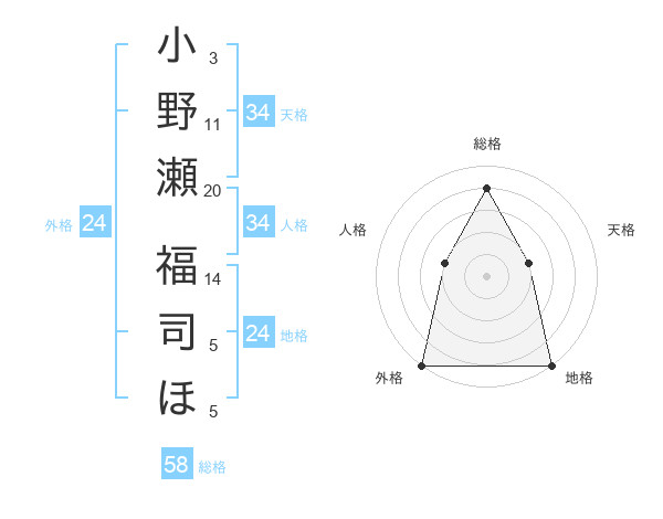 小野瀬 福司ほさんを姓名の画数から五運を鑑定