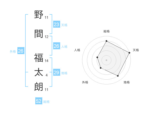 野間 福太朗さんを姓名の画数から五運を鑑定