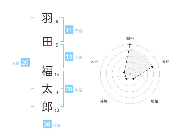 羽田 福太郎さんの総格は39画の5点!