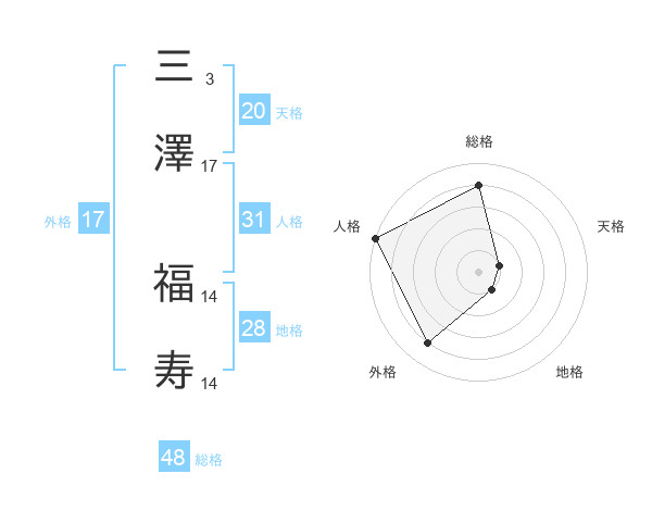 三澤 福寿さんを姓名の画数から五運を鑑定