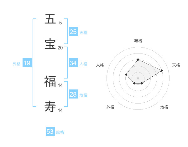 五宝 福寿さんの天格は25画の4点!