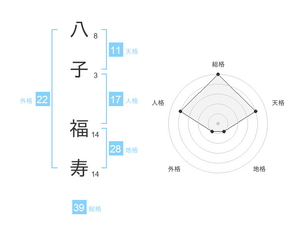 八子 福寿さんの総格は39画の5点!