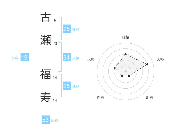 古瀬 福寿さんの総格は53画の3点!