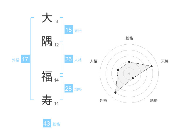大隅 福寿さんを姓名の画数から五運を鑑定