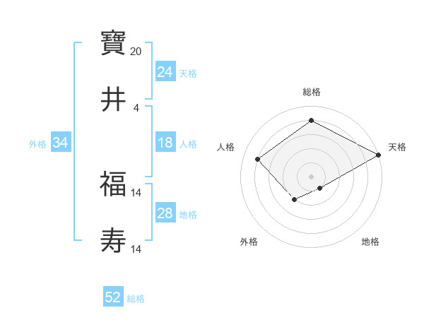 寶井 福寿さんの総格は52画の4点!