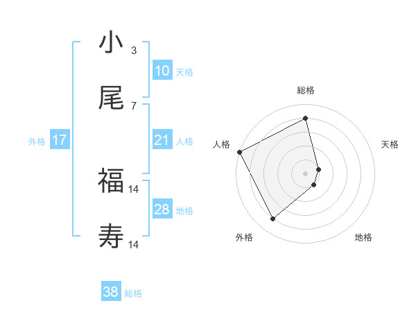 小尾 福寿さんの総格は38画の4点!