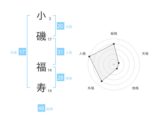 小磯 福寿さんを姓名の画数から五運を鑑定