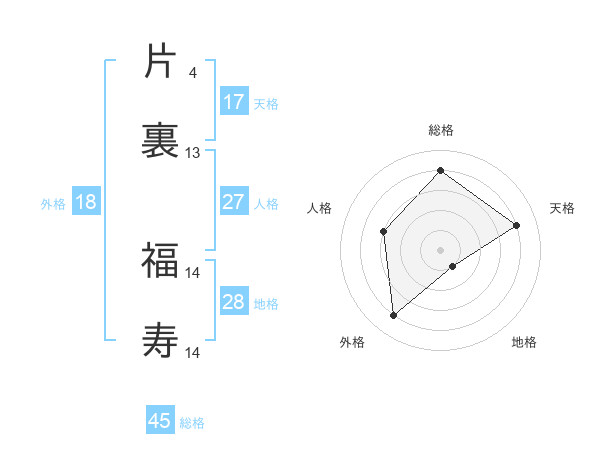 片裏 福寿さんの総格は45画の4点!