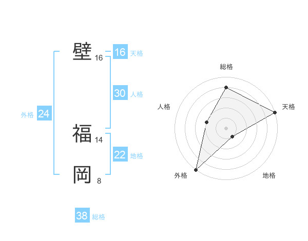 壁 福岡さんの総格は38画の4点!