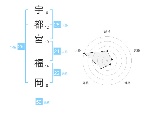 宇都宮 福岡さんを姓名の画数から五運を鑑定