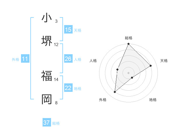 小堺 福岡さんの総格は37画の5点!