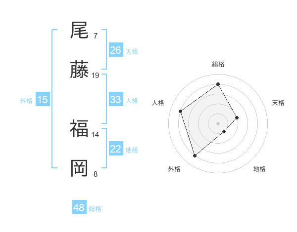尾藤 福岡さんを姓名の画数から五運を鑑定
