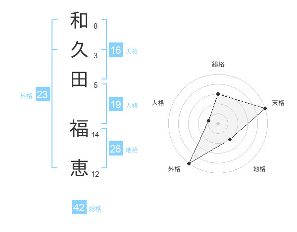 和久田 福恵さんを姓名の画数から五運を鑑定