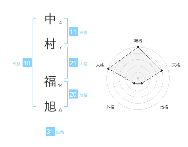 中村 福旭さんの総格は31画の5点!