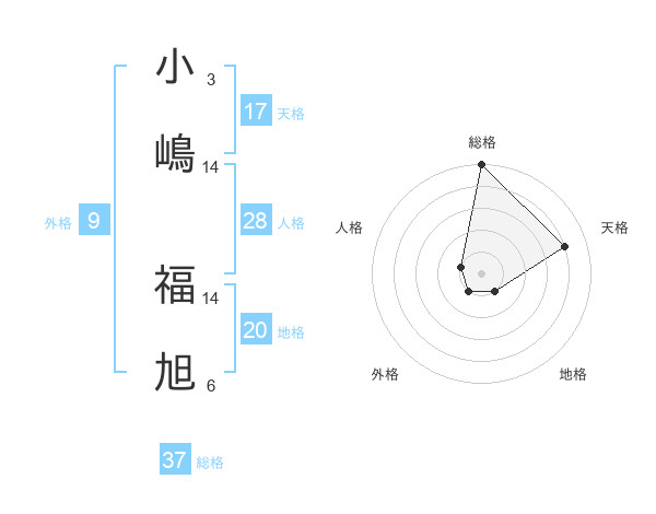 小嶋 福旭さんの総格は37画の5点!
