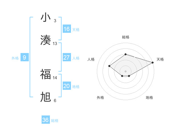 小湊 福旭さんを姓名の画数から五運を鑑定