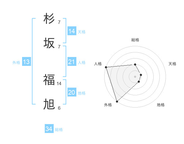 杉坂 福旭さんの総格は34画の2点!