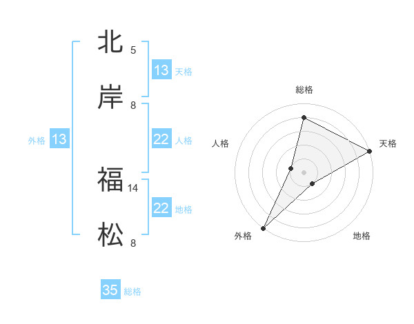 北岸 福松さんの地格は22画の1点!