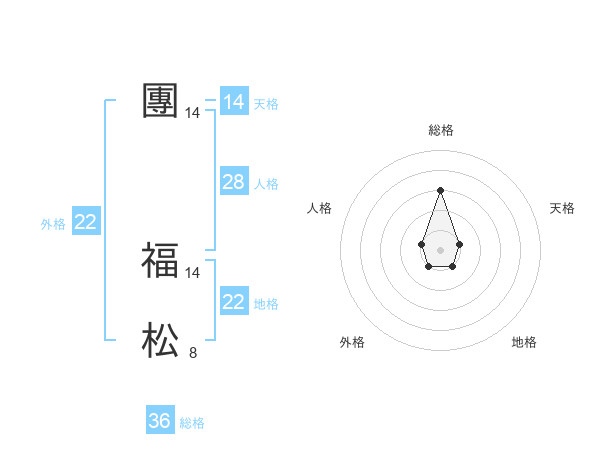 團 福松さんの地格は22画の1点!