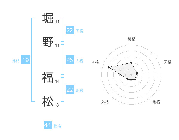 堀野 福松さんの地格は22画の1点!