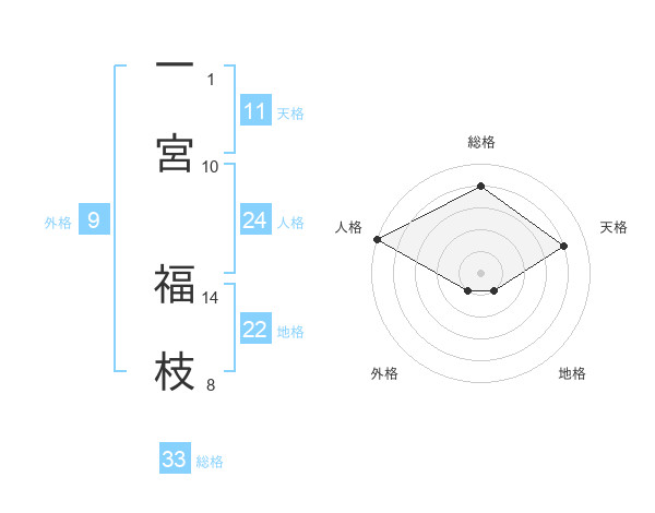 一宮 福枝さんの総格は33画の4点!
