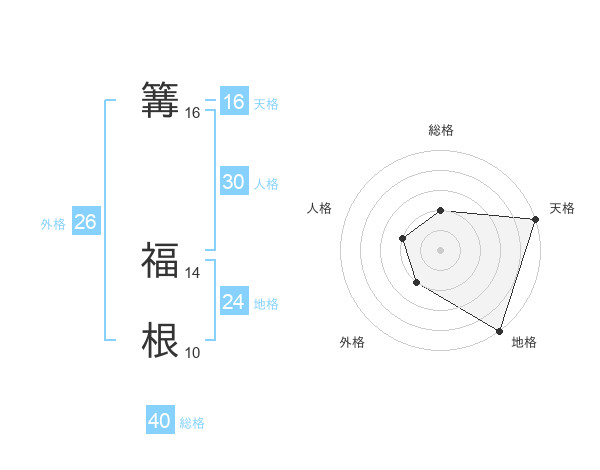 篝 福根さんの天格は16画の5点!