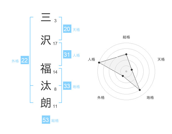 三沢 福汰朗さんを姓名の画数から五運を鑑定