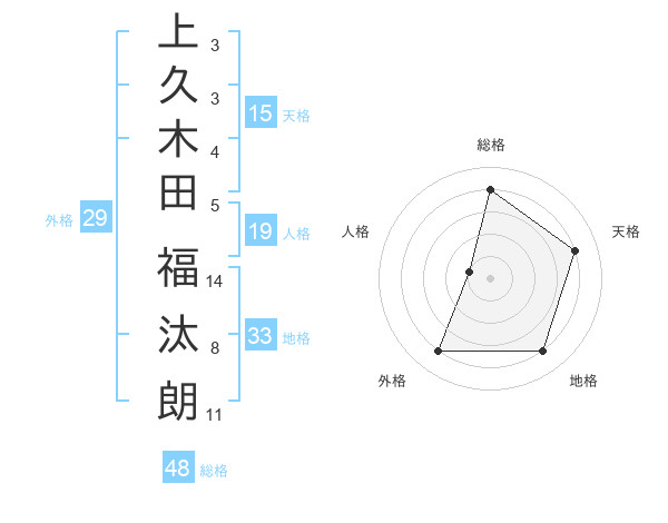 上久木田 福汰朗さんの地格は33画の4点!