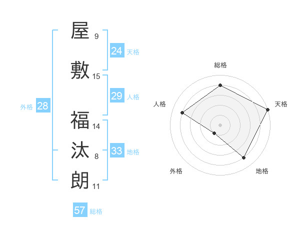 屋敷 福汰朗さんを姓名の画数から五運を鑑定