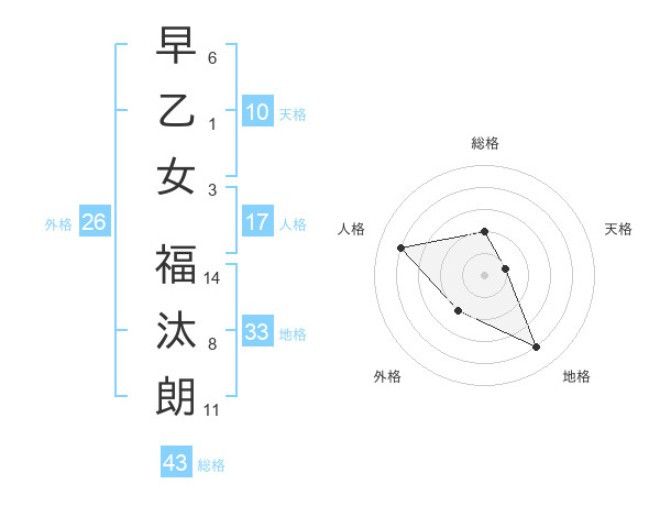 早乙女 福汰朗さんの総格は43画の2点!