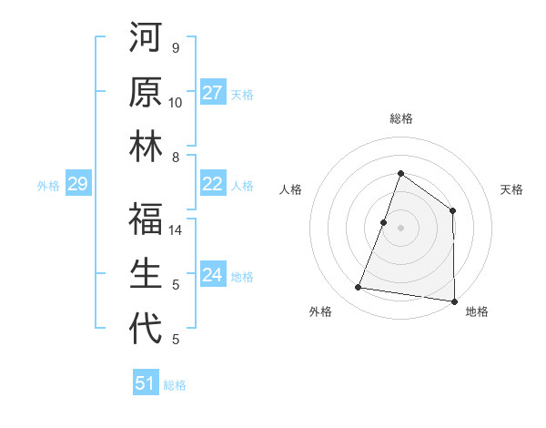河原林 福生代さんを姓名の画数から五運を鑑定