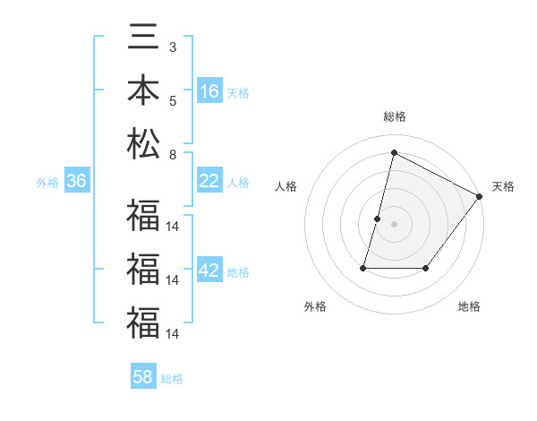 三本松 福福福さんを姓名の画数から五運を鑑定