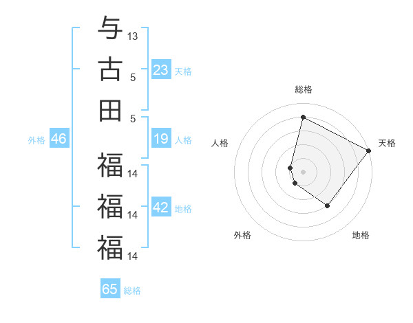 与古田 福福福さんの天格は23画の5点!