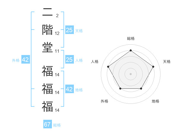 二階堂 福福福さんを姓名の画数から五運を鑑定